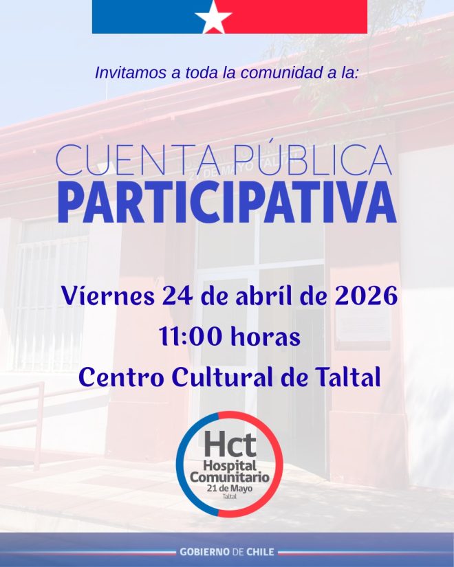 Nos complace invitar cordialmente a toda la comunidad de Taltal, a nuestra Cuenta Pública Participativa gestión 2025.