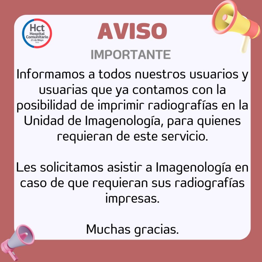Estimada comunidad: compartimos información importante del Servicio de Imagenología.