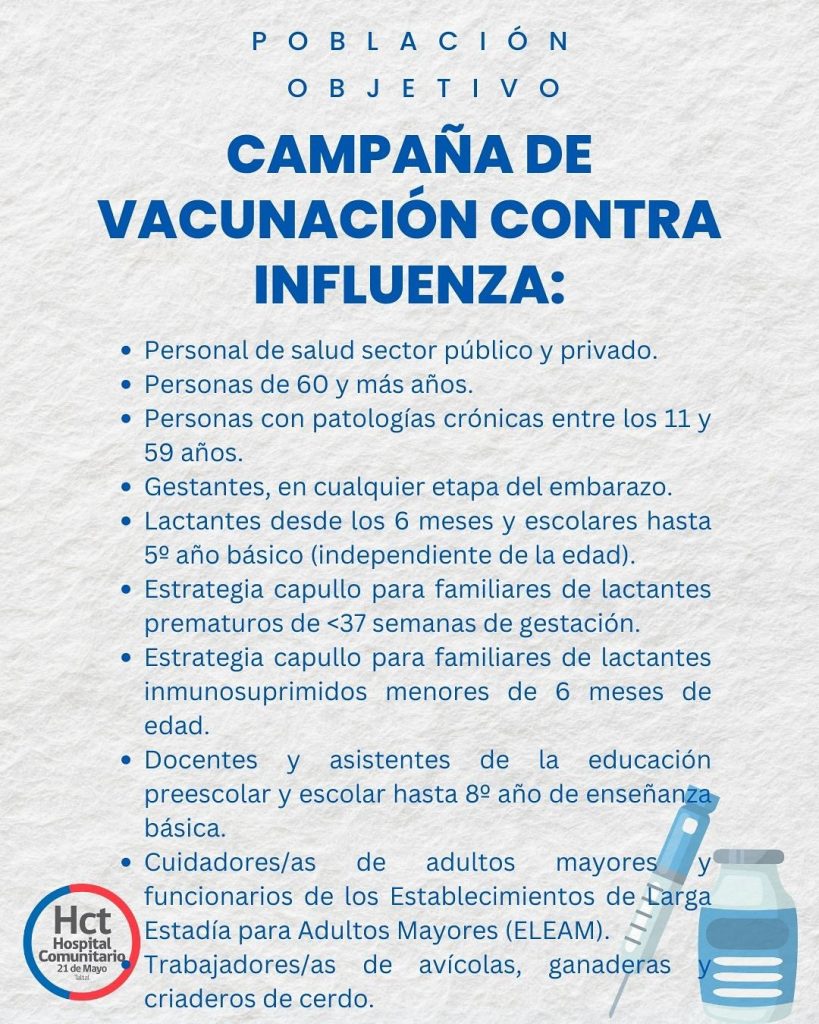 El día 1 de marzo se inicia la campaña de vacunación contra la Influenza, SARS-CoV-2 (Covid-19) y la inmunización contra el Virus Respiratorio Sincicial (VRS).